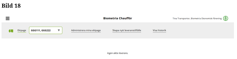 Om ditt ekipage inte finns i sökrutan, läs under kapitel ”Ekipaget finns inte i Chaufförsklienten”. Nedan några exempel när du behöver gå till "Ekipage finns inte i Chaufförsklienten".