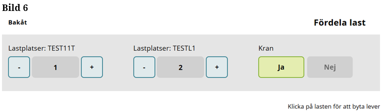 Är det inställt på aldrig kommer det vara förifyllt ”Nej” och det går inte att ändra i vyn Fördela lass. (Bild 7)