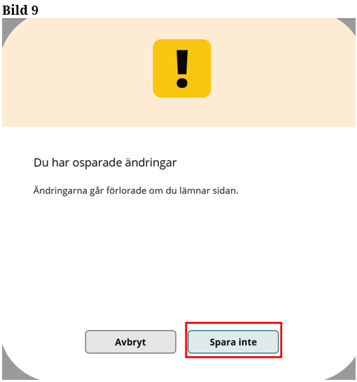 En dialogruta kommer upp. ”Klicka” spara inte. (Bild 9) För att komma tillbaka till vyn Mina Ekipage.